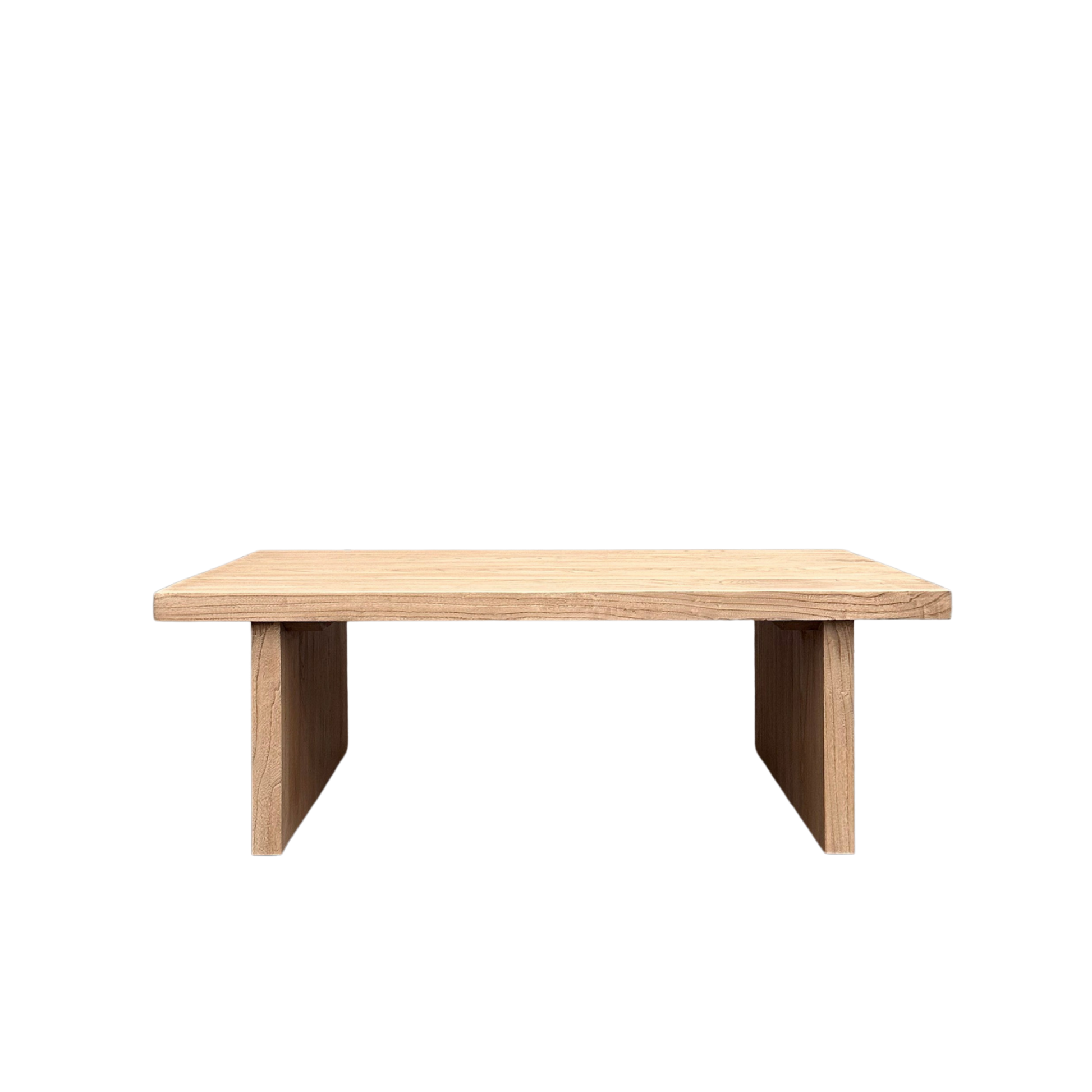 Crafted from solid elm, the Chunky Coffee Table (130) showcases bold proportions and timeless simplicity. Its thick tabletop and sturdy block legs offer a grounded presence, while the natural finish highlights the distinctive grain, knots, and tonal variation of the timber.